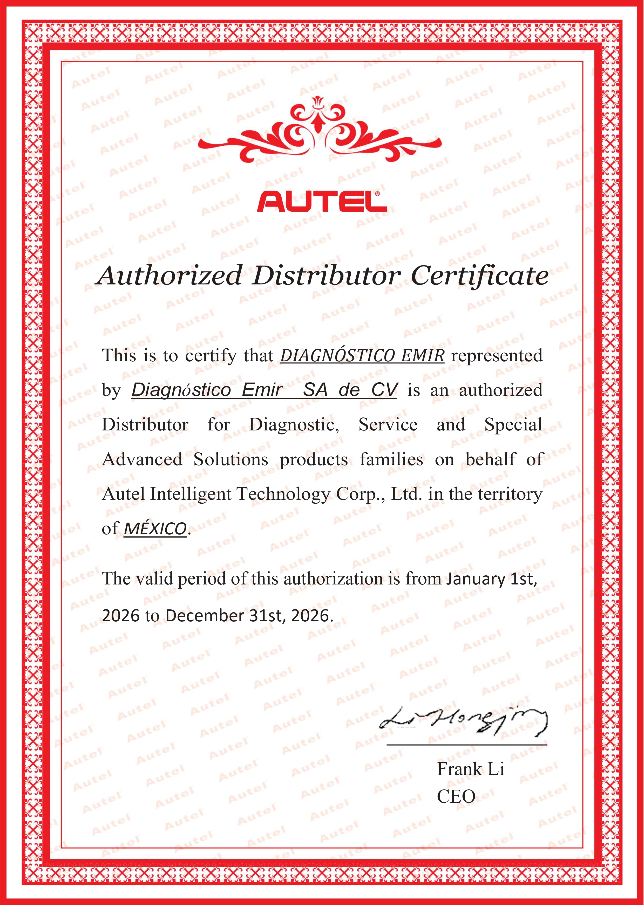 En Diagnóstico Emir trabajamos con productos respaldados por certificados de distribución que fortalecen la confianza comercial y la seriedad de nuestra operación dentro del mercado automotriz mexicano.